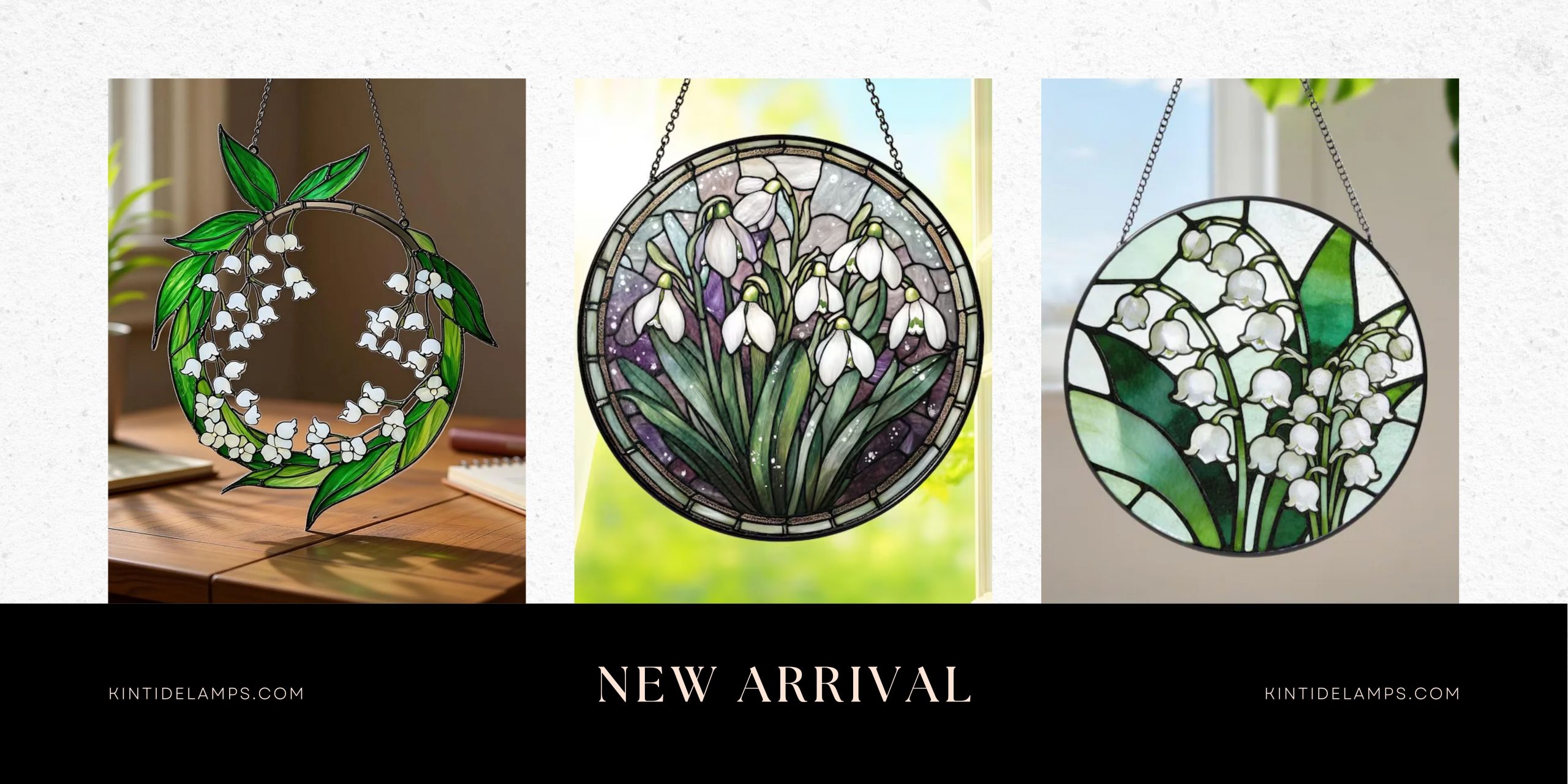 Snowdrop designs symbolize renewal and quiet strength, while Lily of the Valley pieces express grace and timeless charm. Together, they bring floral serenity and luminous warmth to windows, reading corners, and peaceful living spaces.